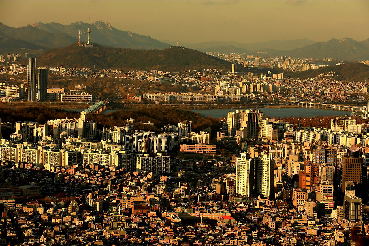 정면 멀리 보이는 산은 북악산이다. 그 산 밑에 작은 동산처럼 보이는 것이 남산이다. 사진을 확대해 보면 남산타워가 선명하게 보인다. 아파트로 빽빽한데 남산을 남겨 둔 것 참 잘한 것 같다.