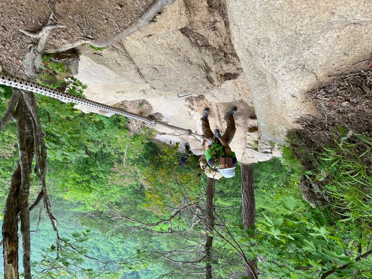 수없이 많은 밧줄에 의지해 내려간 곳은 생각보다 넓고 평평한 곳인데 사람들은 보이지 않고 표지판이 하나 보였다..