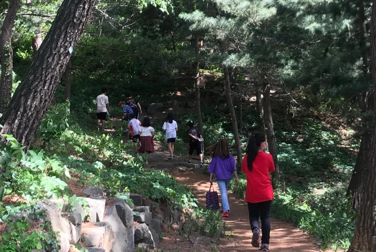 아이들은 시원한 바람과 솔향기를 맞으며