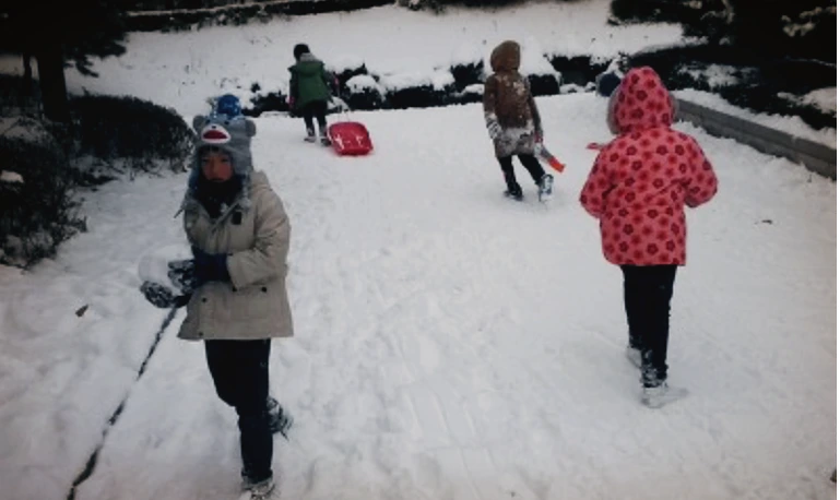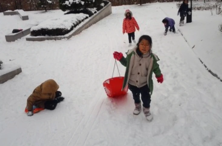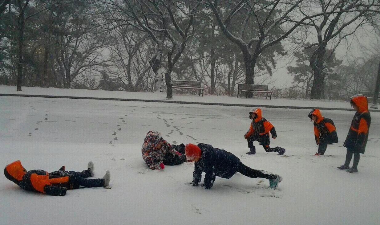눈이 오면 아이들은 하늘을 향해 환호성을 지른다. 오랜만에 보는 눈의 아름다움에 함성을 지르는 것이다. 뛰어가는 아이도 있고 폴짝폴짝 뛰는 아이도 있고 뱅뱅 돌면서 기뻐 어쩔 줄 모른다. 어떤 아이는 눈을 받아먹고 싶다고 한다. 대기오염으로 먹으면 안 되는 것을 알면서도 눈이 너무 깨끗해 보여서 먹고 싶다고 한다. 아이들은 눈길을 걸으며 뽀드득 소리에 귀를 기울이기도 한다.