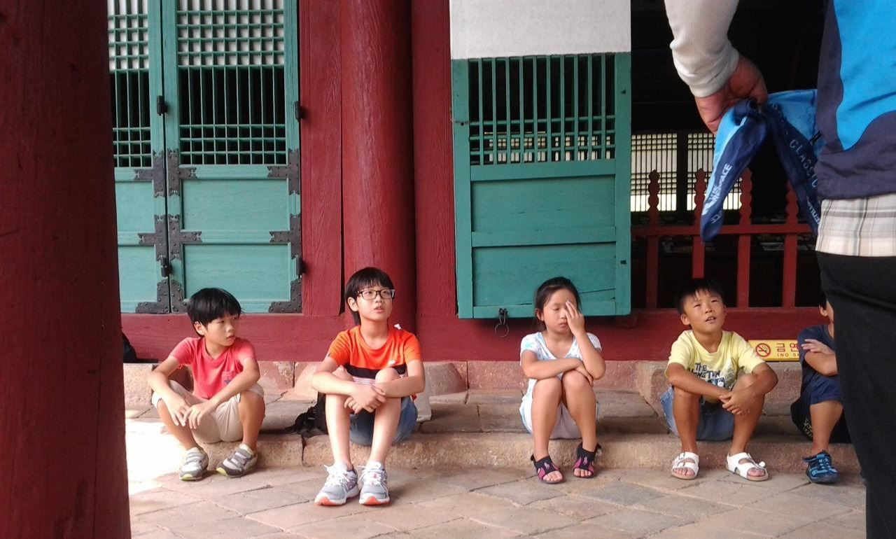 융능에 대한 해설사의 이 아기를 듣고 다시 한번 융능을 보고 더 가까이 가서 볼 수 없는 아쉬움을 뒤로한 채 아이들은 융능을 나오고 있다.