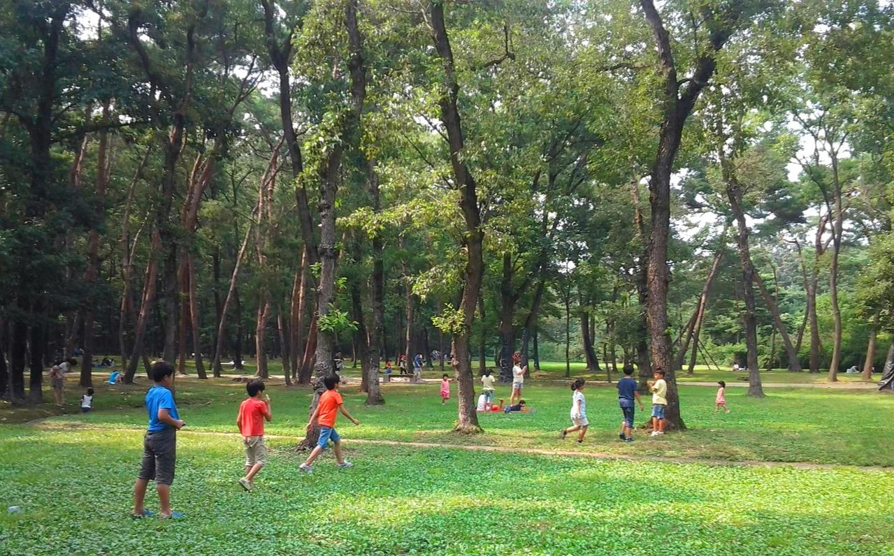 아이들은 넓은 갈참나무 숲에서 자연체험학습을 마무리하는 놀이로 '무궁화 꽃이 피었습니다'를 하며 마음껏 웃고 뛰면서 그동안 쌓였던 스트레스를 날려 보내는 즐거운 시간을 보내고 아쉬운 마움의 여운을 남기고 다음에 꼭 다시 오자고 약속을 하고 융건능을 나왔다.