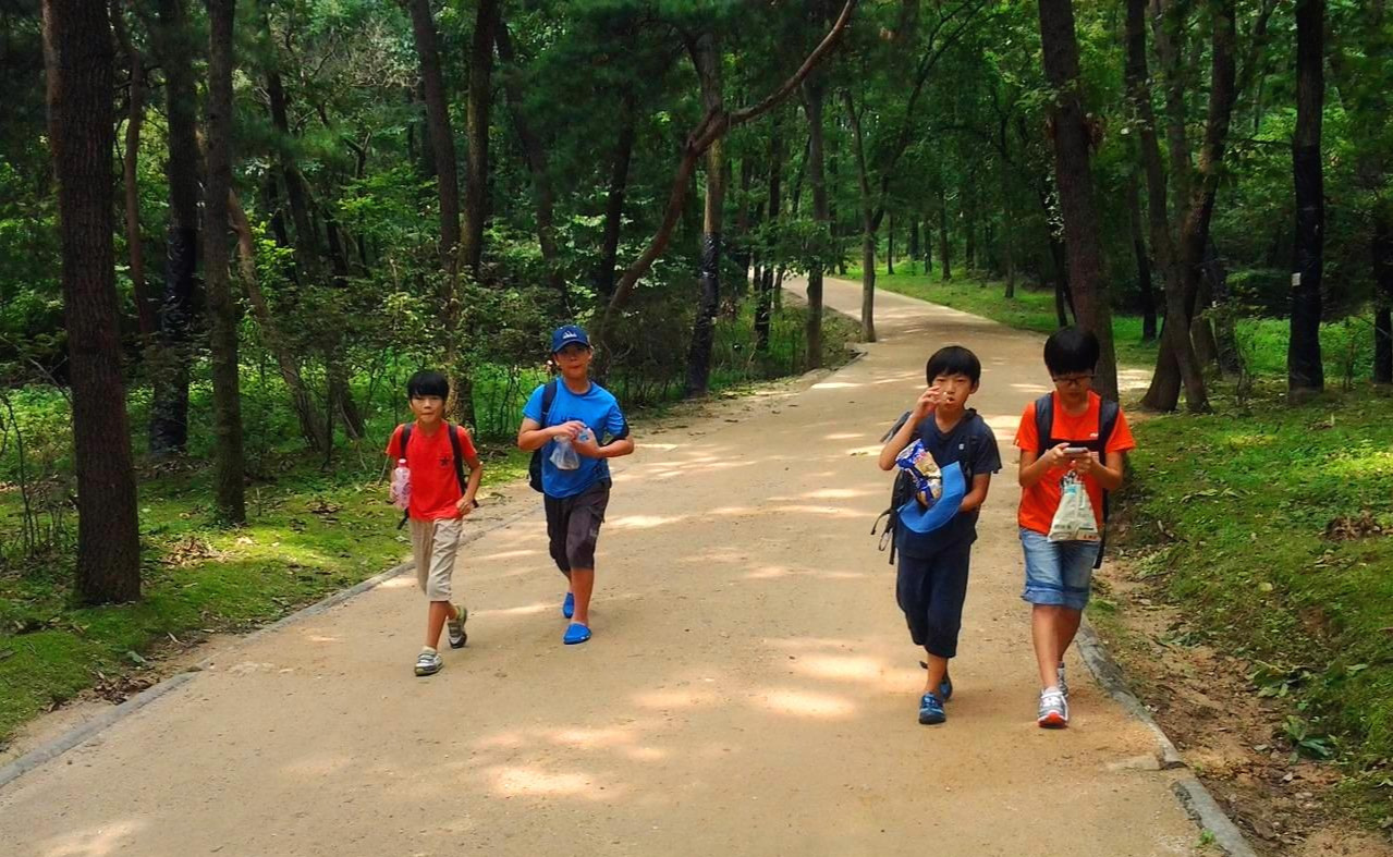 아이들은 숲 길가에서 여러 종류의 버섯도 보고 여름꽃들도 보면서 새로운 것들과 자연이 주는 쾌적함을 마음껏 누리며 융능을 향해 걸어갔다.