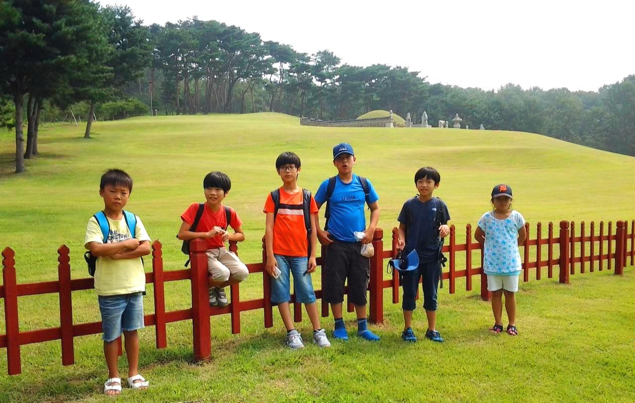 사도세자의 묘인 융능에 도착한 아이들은 다 함께 기념사진을 찍고 해설사의 설명을 듣기로 했다.