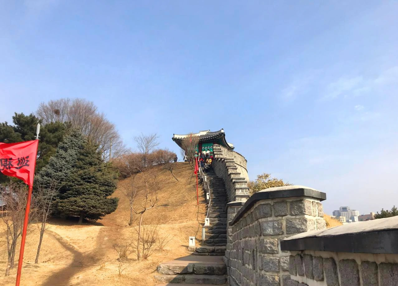 창룡은 청룡으로 풍수지리상 좌청룡이며 동쪽을 의미한다고 한다. 창룡문은 성벽을 보호하기 위한 반달 모양의 옹성을 쌓았는데 다른 문들과는 달리 사람들이 지나다닐 수 있게 한쪽이 열려 있다. 그런데 옹벽 위로 올라갈 수 있는 길이 옆에 있는 것을 오늘 처음 알았다. 그곳에 올라가서 주변을 바라보았더니 저 멀리까지 보인다.