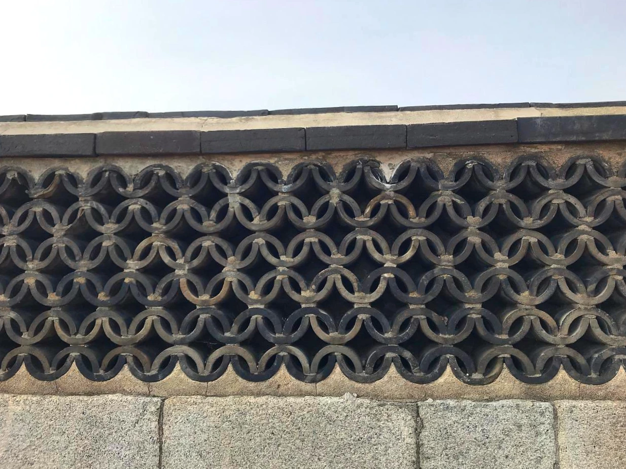동장대 마루에 앉아 주변을 바라보면 수원화성 주변이 한눈에 보인다. 멀리 보이는 동북공심돈이 누각 기둥 사이로 아름답게 보인다. 이곳 누마루에서는 어느 방향으로 보아도 아름답다. 오늘은 미세먼지가 심해서 가시거리가 짧아 다른 곳은 사진으로 보여줄 수가 없는 것이 안타깝다. 그리고 동장대는 무예를 수련하던 곳이라고 하여 연무대라고도 한다. 그래서 연무대 뒤쪽 마을이 연무동이다. 연무대는 아름다운 담이 있다. 뒤편을 자세히 보면 성곽 밑에 또 다른 담이 나지막이 쌓아놓았다.