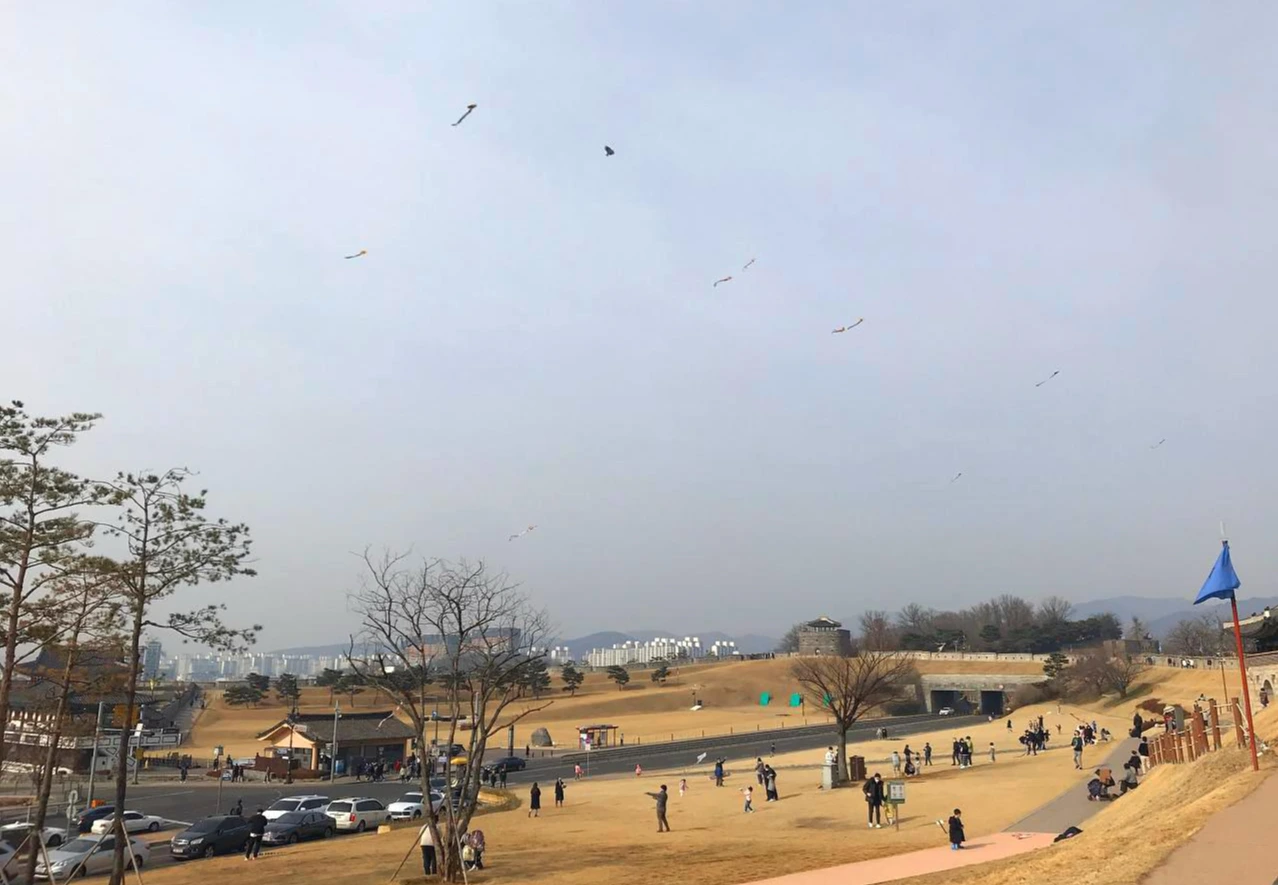 수원화성은 어느 계절 언제 보아도 아름답다. 아무것도 없는 이 계절에도 아이들을 데리고 나와서 연을 날리는 사람들이 많이 보인다. 바람의 방향으로 인해 오늘은 성에 기대어 연을 날리기도 한다.