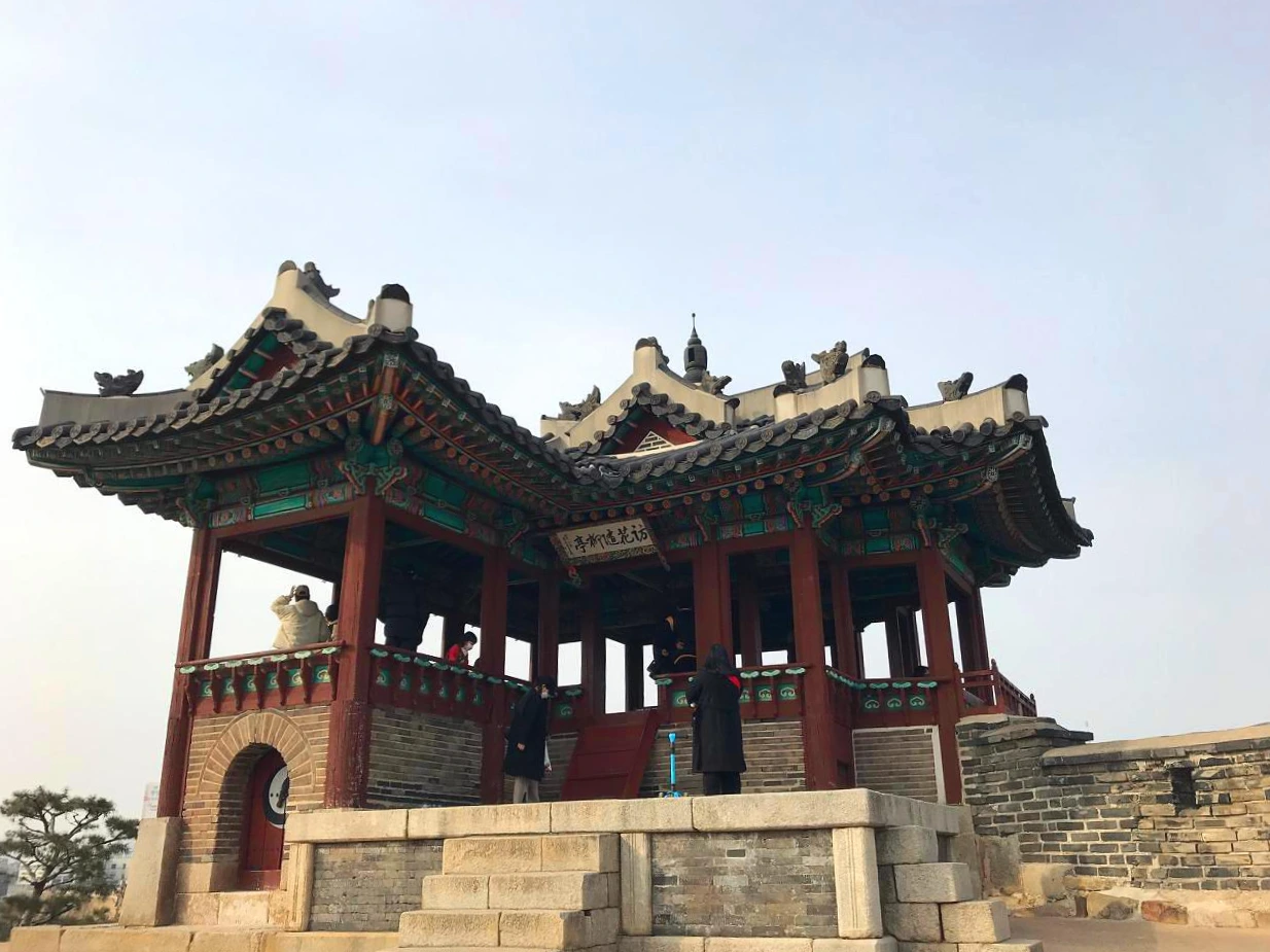 동북각루는 보는 각도에 따라서 모양이 다르게 보인다. 오늘은 사람들이 너무 많아서 멀리에서 사람들이 나가길 기다리다 지붕을 바라보았는데 다른 때에는 새들이 지붕에 앉아 있는 모양으로 알았는데 용머리를 새겨 놓은 것이라는 것을 알았다. 동북각루는 다른 성에서는 볼 수 없는 누각으로 수원화성에도 가장 아름다운 곳이다. 루각 마루의 중심부는 임금이 앉는 옥좌에 온돌마루가 있다.