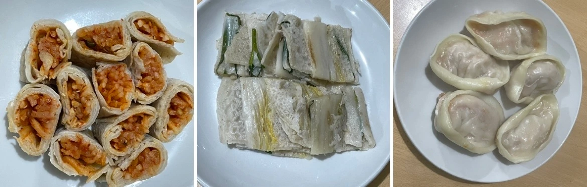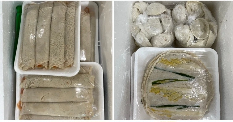 메밀전병, 만두, 메밀부침 세 가지를 정성껏 만들고 포장해서 보내 주었다.