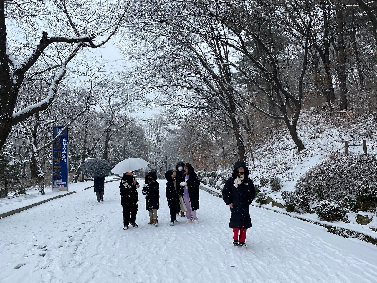 아이들과 산으로 올라가 눈싸움도 하고, 눈도 굴리고