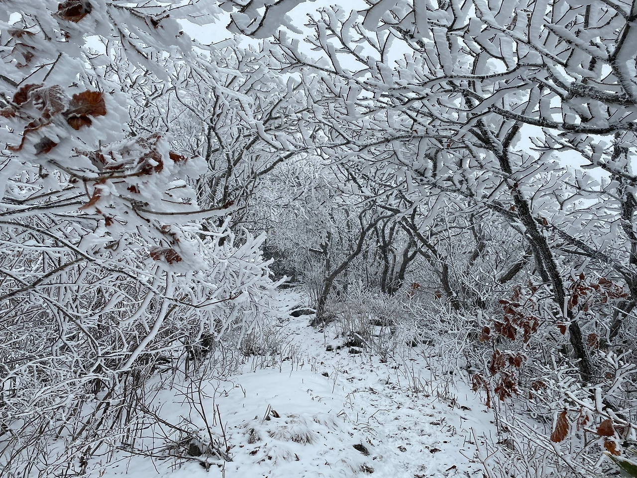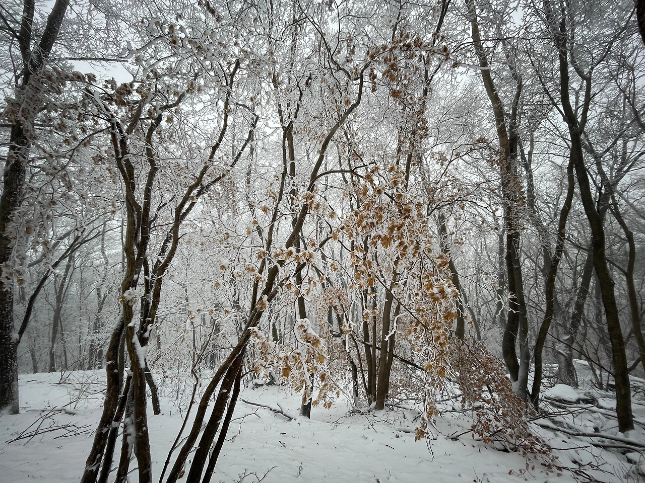 낮은 산에서 상고대를 보게 될 줄은 생각도 못했다.