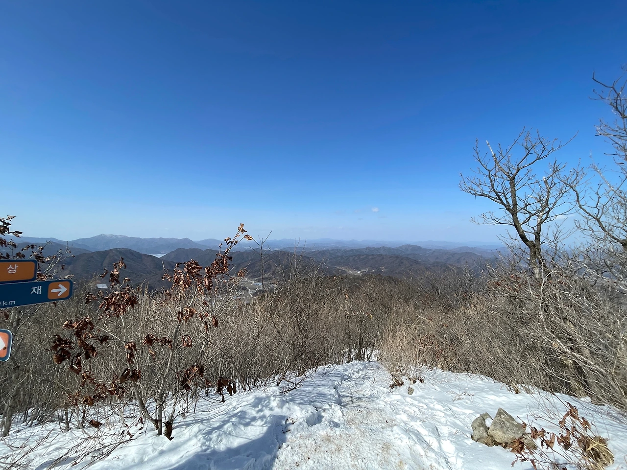 오늘 산행은 다른 날과 뭔가 이상하다는 생각을 했다. 후미에서 함께 밥을 먹고 가자고 하는데 앞에 선두가 있어서 밥을 안 먹고 선두를 따라가려고 했다. 그런데 앞에 가던 사람을 따라가다가 길이 막혔다. 그래서 우측 산 쪽을 보니 백두대간길을 표시한 것이 보여서 올라갔다. 우리가 후미가 되었다. 이미 후미는 가고 한참을 돌아 우리는 알바를 한 것이다.