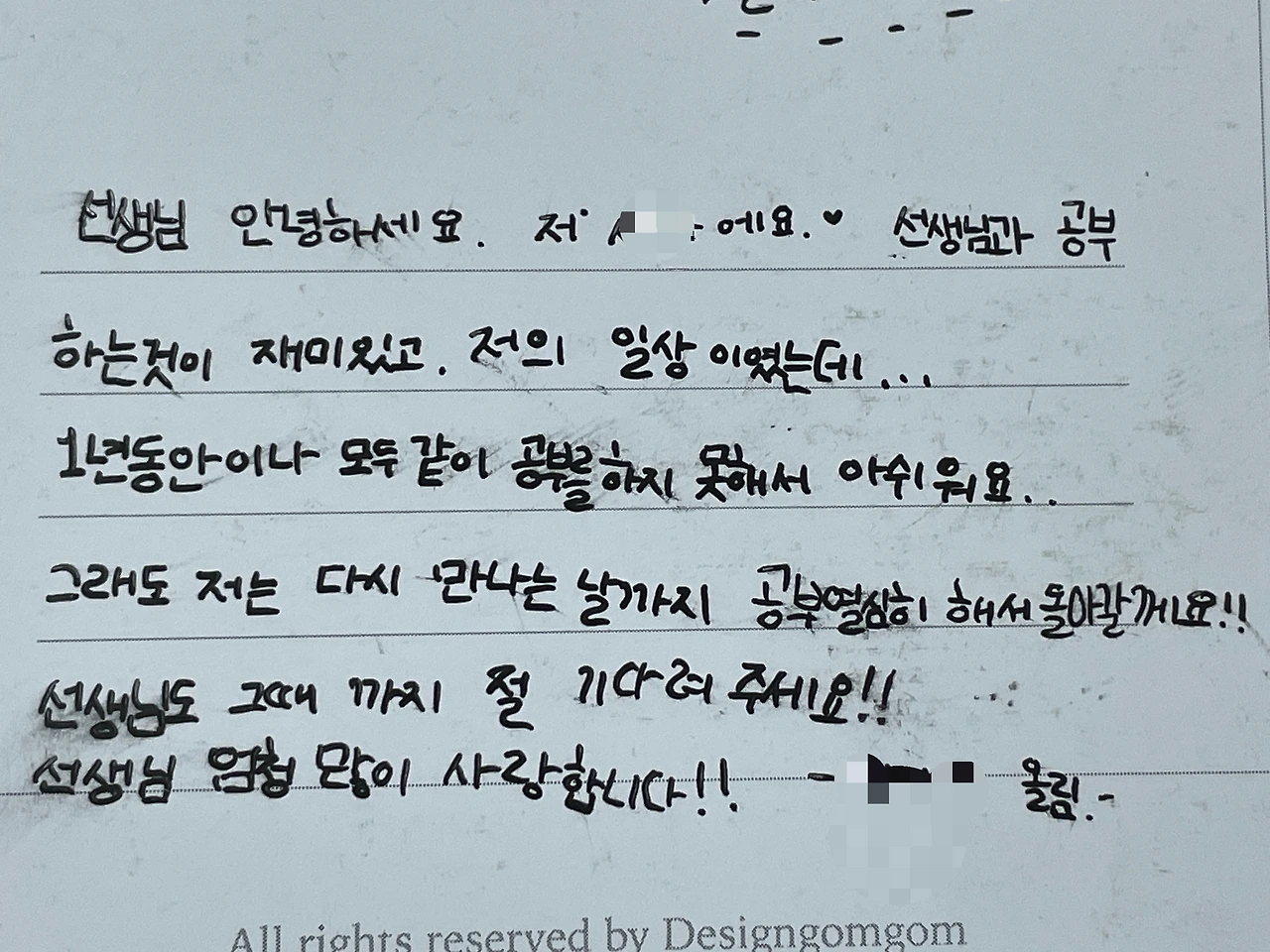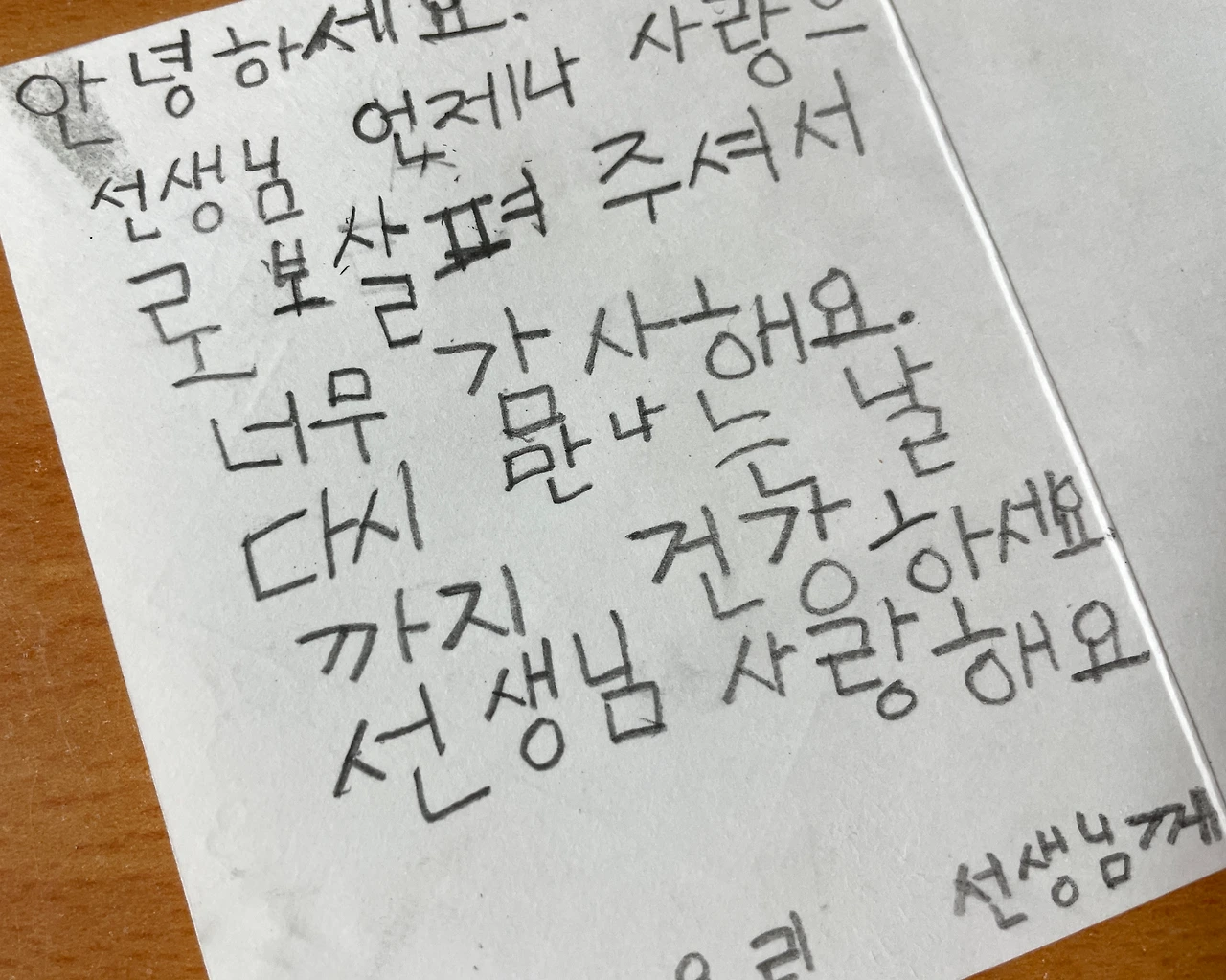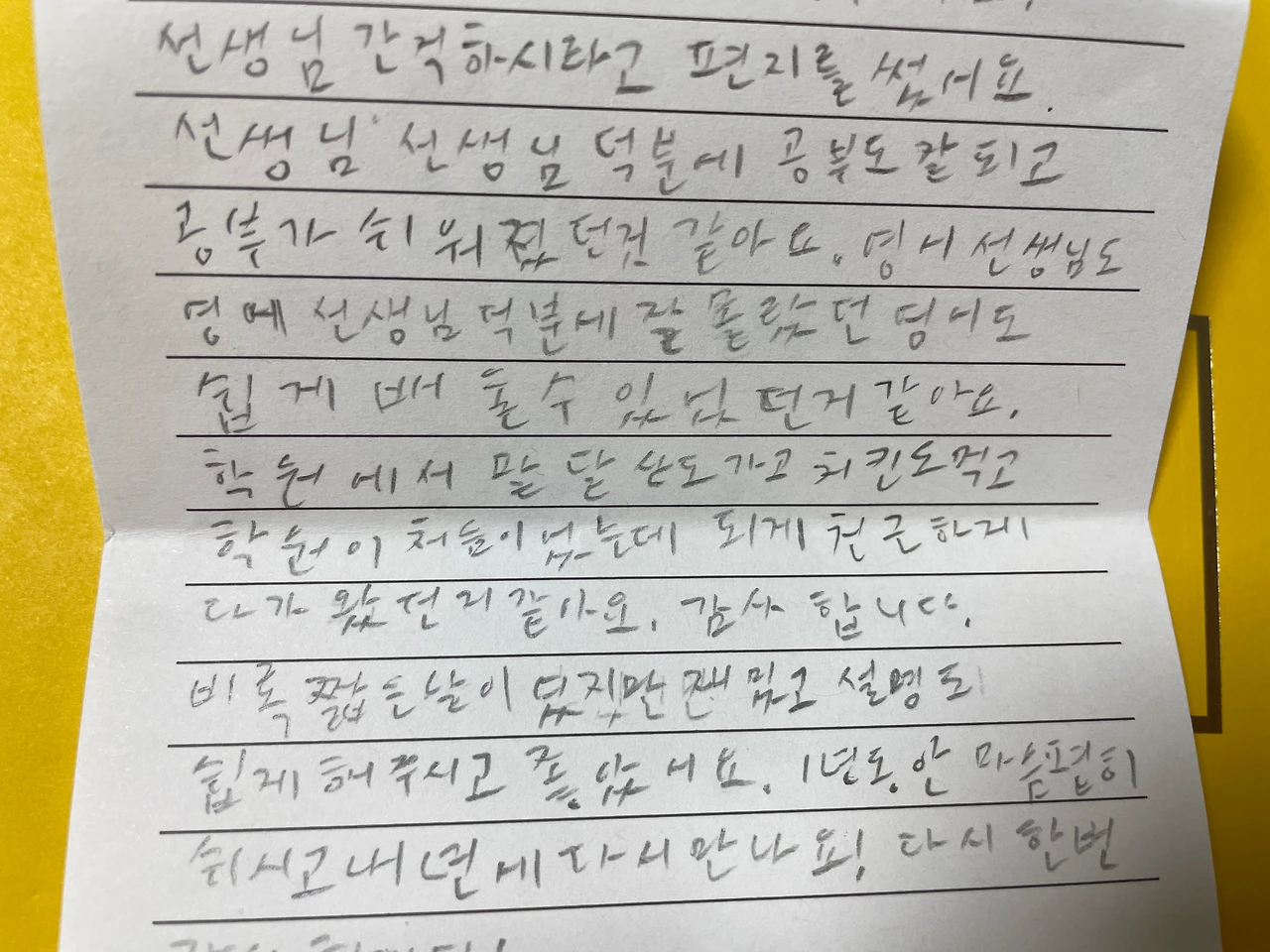 선생님 간직하시라고 편지를 썼어요.