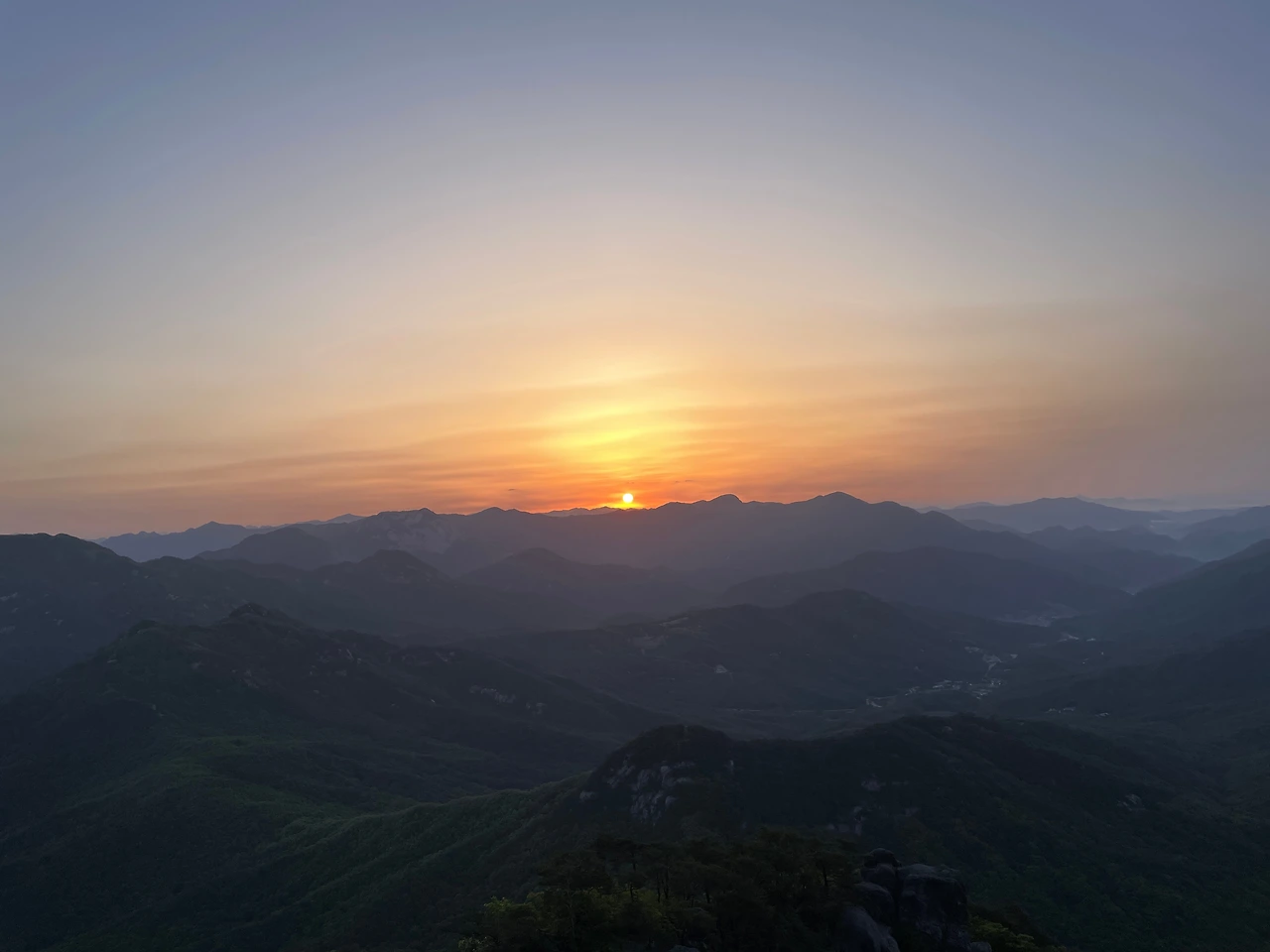 일출과 함께 보이는 산하는 너무 아름다웠다.