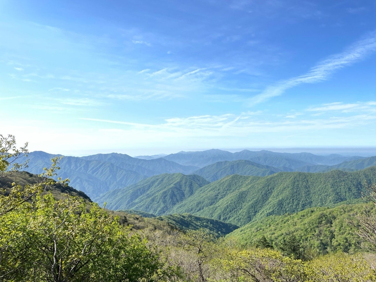 멀리 이어지는 능선들이 발걸음을 재촉했다. 등산로 옆으로는 얼레지꽃이 수줍은 듯 피어 있었다. 군락을 지어 고개가 흔들리는 보랏빛 꽃들이 마치 우리를 응원하는 것처럼 보였다.