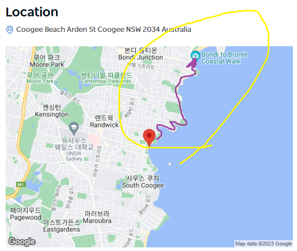 호주에 와서는 주로 Train을 이용했는데, 이번 Coogee beach를 가보면서 처음으로 버스를 타보게 됐다. 단 한 번의 경험으로도 버스보다는 트레인을 이용해야겠단 생각이 들었는데, 여기 버스에서는 우리나라처럼 안내 방송이 나오지 않았다. 정류장을 그냥 휙-휙- 지나치는 버스의 모습을 보며, 재빨리 주머니에서 폰을 꺼내 구글맵을 확인했다. 실시간 나의 위치를 추적하며 언제 내릴지 가늠하고 있는데, 몇몇 사람들이 내리기 전 버스 하차벨을 누르는 모습을 볼 수 있었다. 마음 졸이며 구글맵을 보다 보니 어느덧 Coogee beach에 도착했다. 앞서 걱정과는 달리 하차벨을 신경 쓸 겨를도 없이 버스에 탄 거의 모든 사람이 그곳에서 내려서 나도 따라서 버스에서 내렸다.