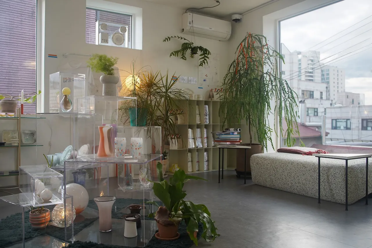 Q 공간에 있는 유리 작품들 외에도, 곳곳에 놓인 소품이나 오브제들도 대표님의 취향이 뚜렷하게 반영된 물건들인 것 같아요. 저처럼 구매할 수 있는 건지 물어보는 분들도 많을 것 같은데요?