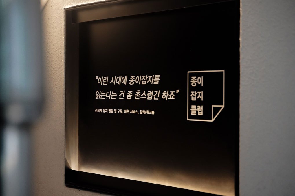 A 사실 서점에서 매니저로 일하면서 명징하게 느낀 게, 한국에선 서점으로 먹고살기는 힘들겠다는 것이었어요(웃음). 그런데, 그래서 더 해보고 싶었어요. 비즈니스 관점으로 사람들이 해결하지 못한 분야의 솔루션을 만들어보고 싶다는 마음이 컸거든요. 오늘날 종이잡지클럽이 갖는 컨셉은 지금의 동업자가 제안해 주었고, 시작하기 전에는 꽤 많은 걱정과 고민이 있었는데 결국에 시작하게 된 계기가 한국에 이런 비즈니스 모델이 없었던 게 컸습니다. 해외에는 잡지만 다루는 서점이나 이런 회원제 열람 서비스 공간들이 꽤 있는 반면에 이곳에는 그런 모델이 아예 없었거든요. 그래서 이 분야를 선점한다면 충분히 매력적인 공간이 될 수 있겠다고 생각하고 바로 시작하게 되었죠.