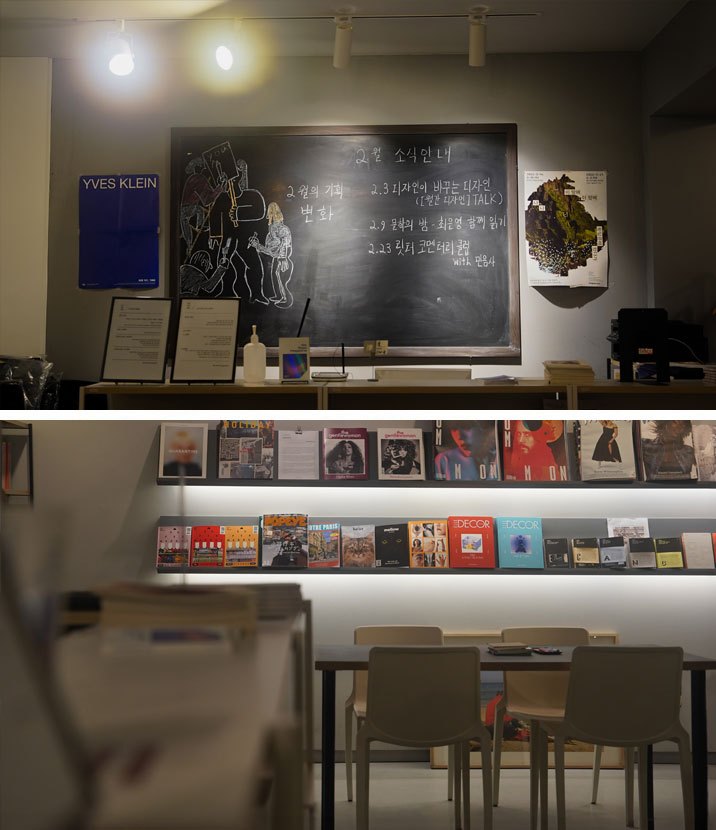 제가 전에 일했던 서점에도 커피를 팔고, 맥주도 팔고 이벤트도 하는 형태였는데, 그러다 보니 운영자가 가진 모습이 너무 많아져서 공간 자체의 아이덴티티도 굉장히 모호해지더라고요. 또 그런 공간에선 음료를 구매하는 게 공간의 입장료가 되는 거다 보니 애초에 그런 식의 변화구를 던지고 싶진 않았어요. 이 공간을 이용하겠다면 그냥 공간의 이용료를 내고 이곳의 본질적인 기능을 충분히 누리다 가실 수 있도록 하는 게 맞다고 생각했어요. 그만큼 오롯이 종이 잡지를 필요로 하는 분들이 이곳에서 온전한 시간을 보내다 가실 수 있으면 좋겠다는 마음입니다.