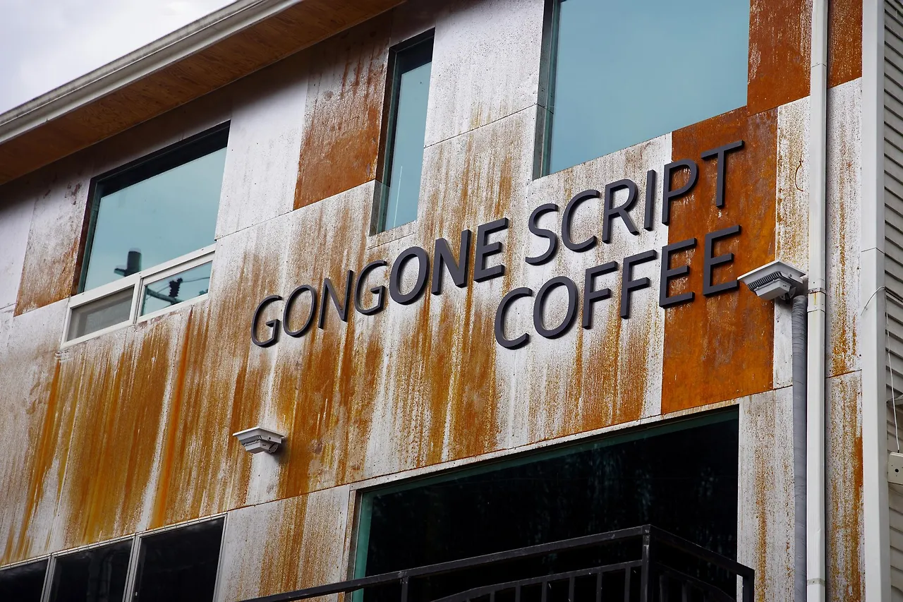 한적한 경치를 자랑하는 용인의 고기동, 너도 나도 예쁘고 멋진 분위기를 자랑하는 큼지막한 카페들 사이에, 공원스크립트는 홀로 녹슨 모습으로 우두커니 서 있습니다. 마치 싱그러운 풀밭 위에 덩그러니 놓인 거대한 고철 덩어리처럼 이질적인 장면에서 느껴지는 오묘한 매력이 지나가던 방문객들의 발걸음을 붙잡습니다.