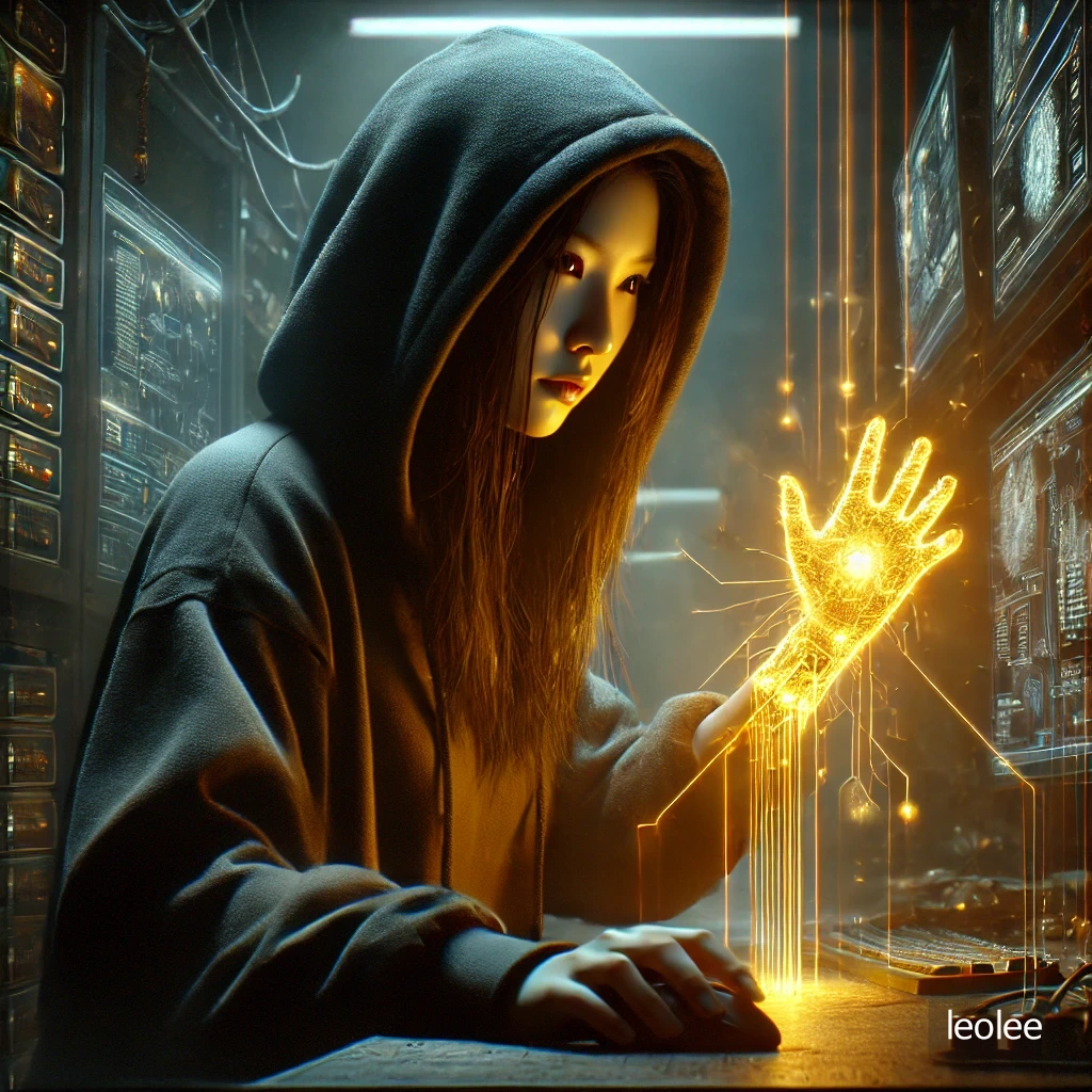 손끝에서 흘러나오는 금빛이 점차 강해졌고, 그녀는 연구소 서버의 주요 방어 체계를 뚫기 위해 데이터를 조작하기 시작했다. 폐공장 내부의 컴퓨터 화면에는 복잡한 코드와 로그들이 빠르게 흘러갔다. 그러나 그녀가 예상하지 못했던 강한 방어막이 나타났다.