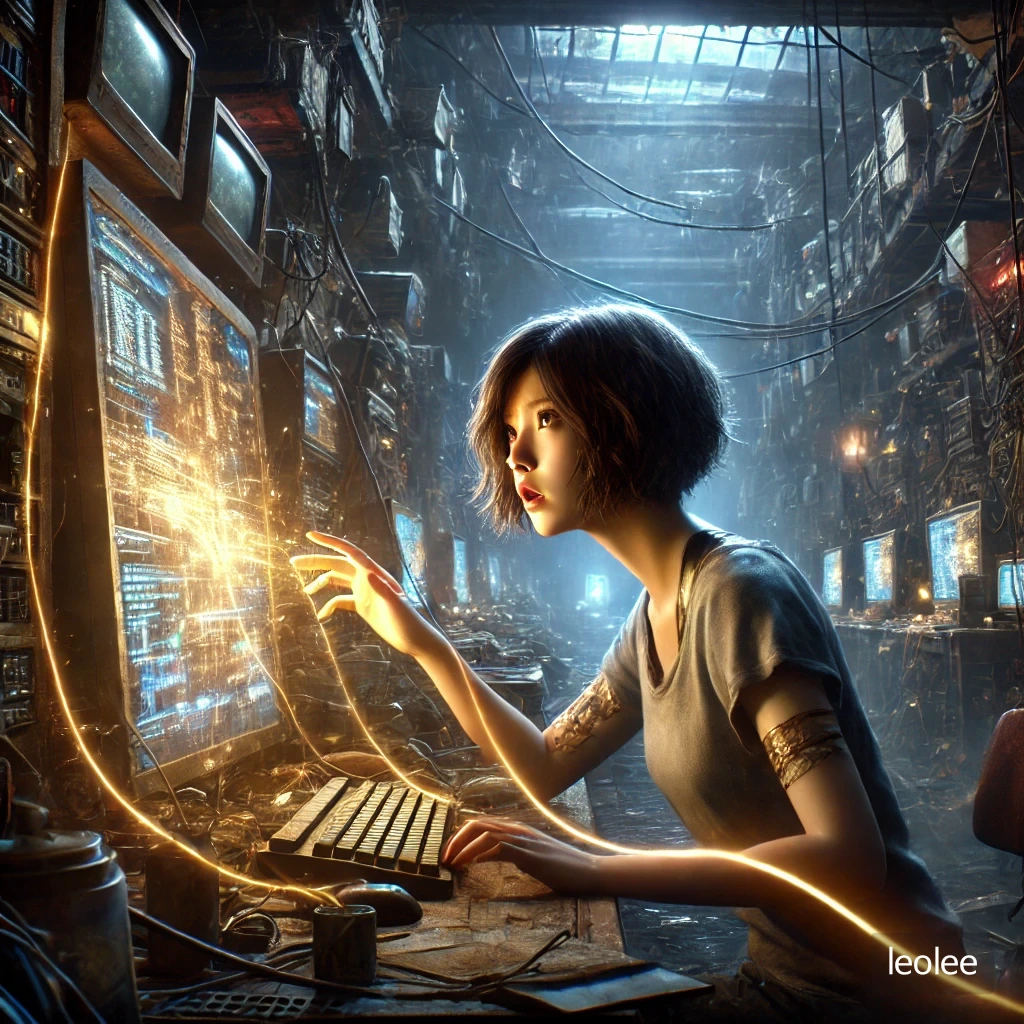 서윤은 어두운 작업실에서 손끝으로 금빛 에너지를 발산하며 데이터 흐름을 분석하고 있었다. 모니터에는 복잡한 코드와 경로가 빠르게 지나가고 있었지만, 그녀의 시선은 한 지점에 멈췄다. 연구소 네트워크에서 이상한 흔적을 발견한 것이다.