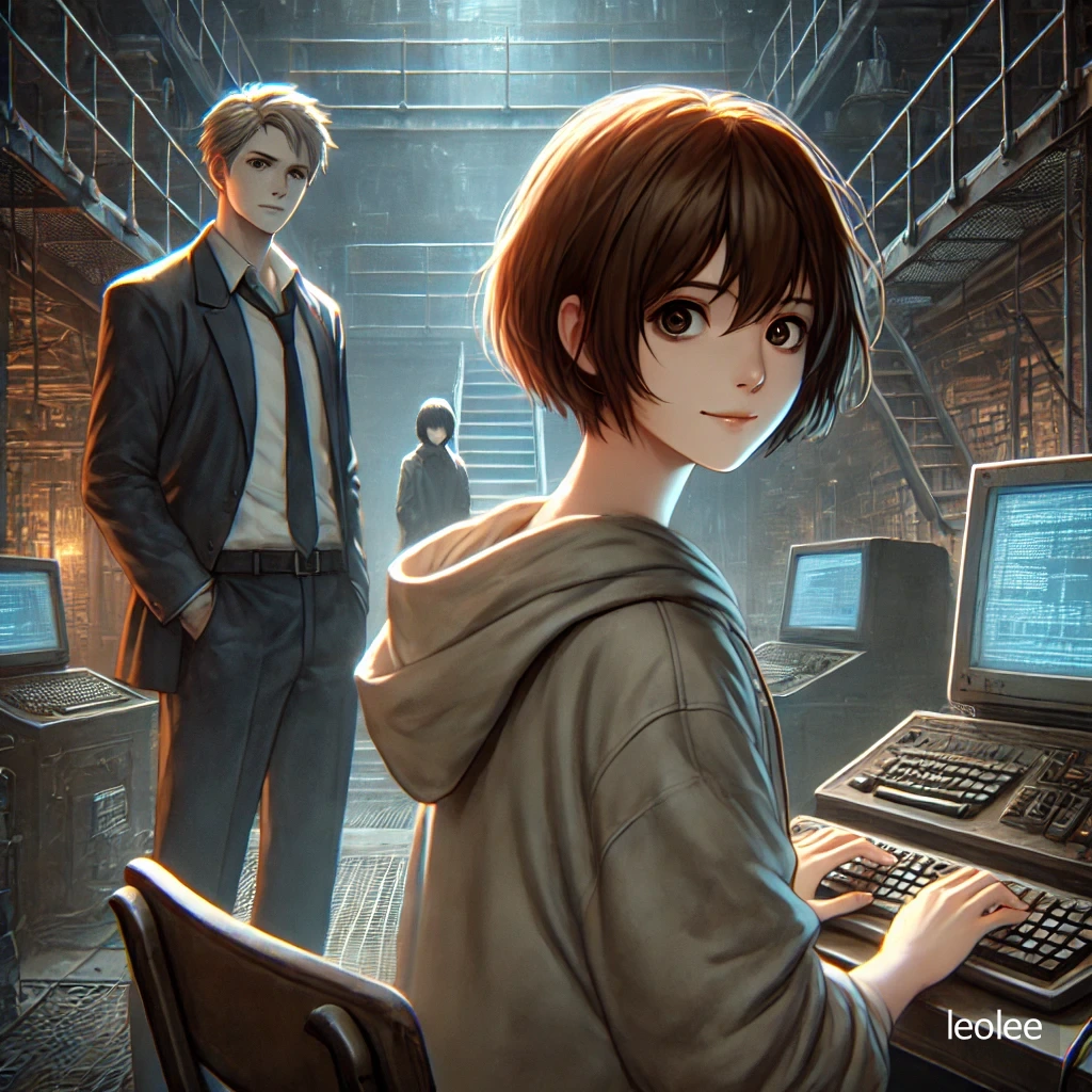 철문을 조심스럽게 열자, 희미한 빛이 새어 나왔다. 그 안에는 노트북 화면의 푸른 불빛이 깜빡이고 있었다. 서윤이 그 앞에 앉아 있었다. 후드티를 걸친 채, 노트북을 바라보는 그녀의 옆얼굴은 차갑고 담담했다. 이준호가 발소리를 내며 다가가자 그녀는 천천히 고개를 돌렸다.