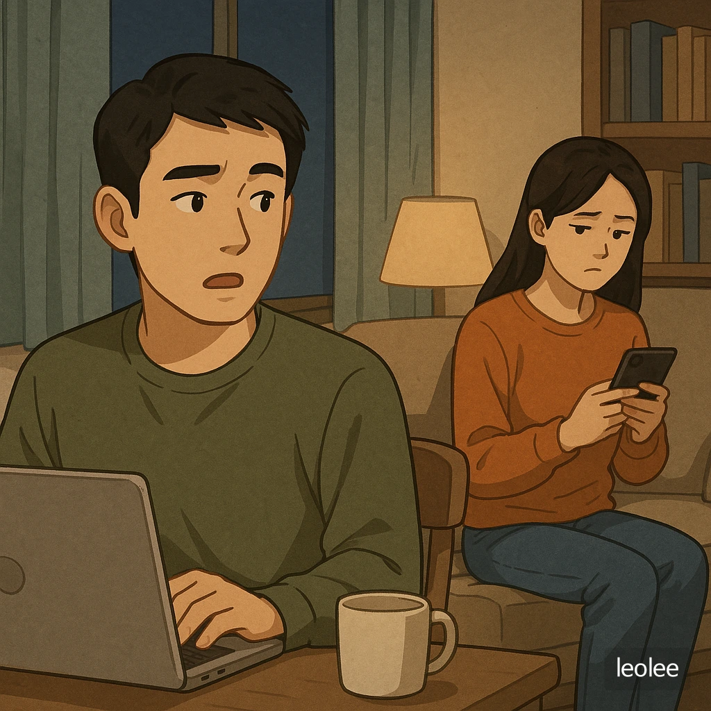 그녀는 다시 휴대폰으로 시선을 돌렸다. 말투는 평소와 다르지 않았지만, 어딘가 멀어진 듯한 느낌이었다.