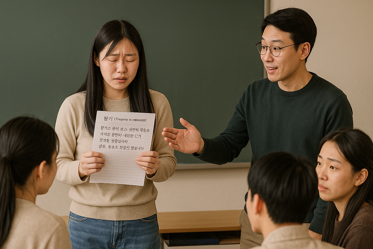 나는 사실 지난 수업에 했던 내용이라서 어렵지 않을 것으로 생각했다. 학생들에게 먼저 짧게 글을 쓰게 하고, 그걸 토대로 말하기를 시켜보았다. 사실 나는 늘 글쓰기와 말하기 사이에 연결이 있다는 걸 알고 있었다. 글로 정리할 수 있으면 말하기도 훨씬 수월해진다는 것. 하지만 실제 수업 속에서 그 차이가 얼마나 선명하게 드러나는지는, 이번 활동을 통해서야 더 깊이 이해하게 될 거라고 생각했다.