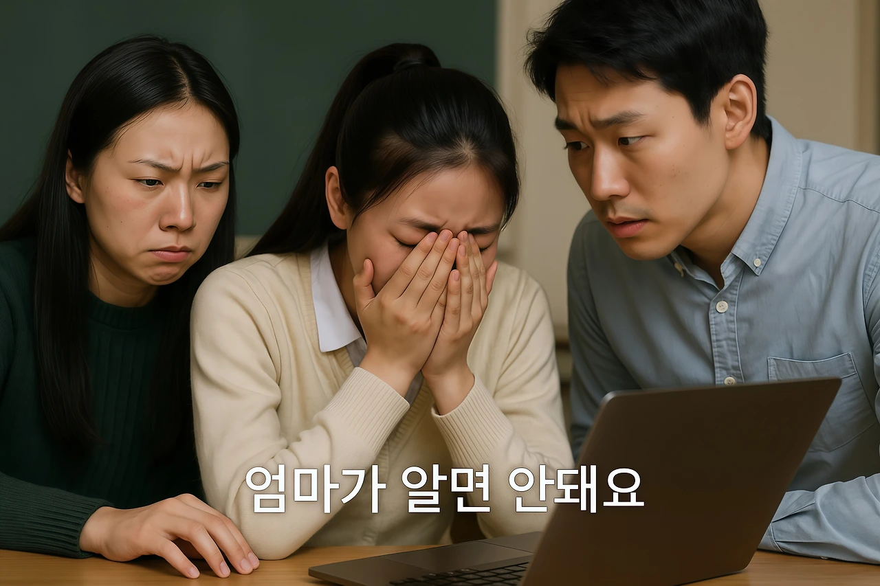 “선생님… 저 어떻게 해요… 엄마가 알면 정말 큰일 나요.”