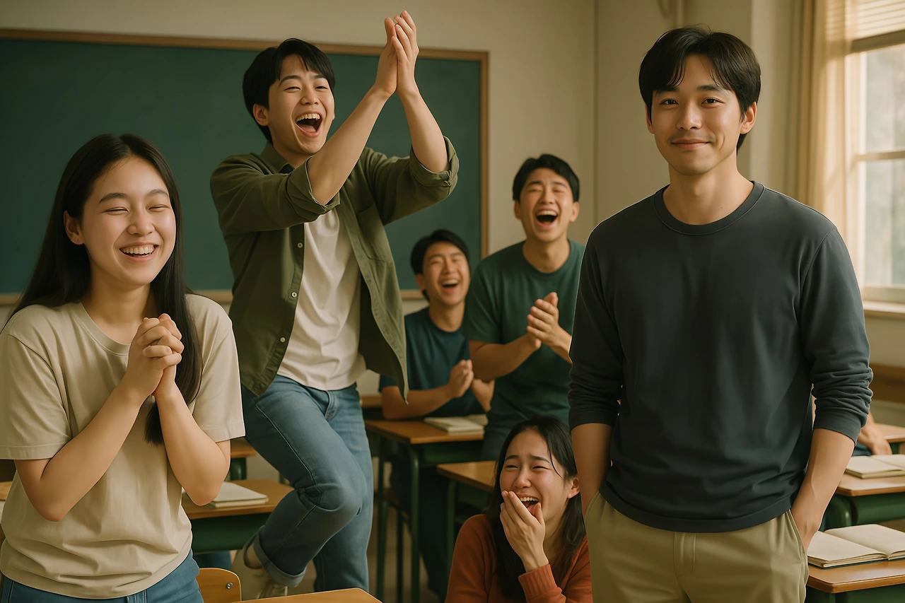 어떤 학생은 두 손을 맞잡으며 감격한 듯 눈을 반짝였고, 또 다른 학생은 자리에서 벌떡 일어나 박수를 쳤다.