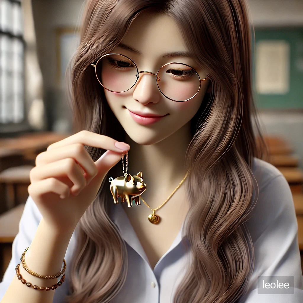 그녀는 목에 걸린 금돼지 목걸이를 만지며 부끄러운 듯 대답했다.