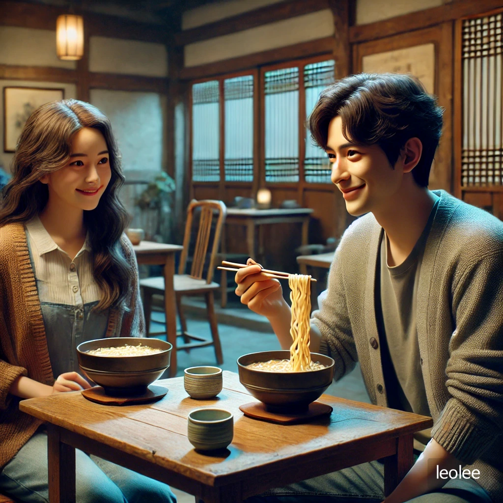 우리는 사귀게 되고 난 후 종종 교실이 아닌 밖에서 함께 점심을 먹곤 했다. 학교 근처의 작은 식당에서 그녀와 함께 마주 앉아 국수를 먹던 기억이 난다. 그날, 나는 그녀에게 농담을 던졌다.