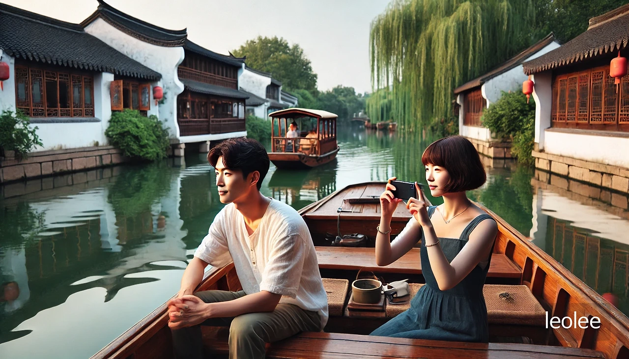 여행 첫날, 우리는 상하이로 바로 가지 않고 근처 도시인 쑤저우를 들르기로 했다. 쑤저우는 '중국의 베니스'로 불리는 곳이었다. 수로를 따라 이어진 도시의 풍경은 마치 그림 같았다. 우리는 작은 배를 타고 물길을 따라 움직이며 주변의 전통 건축물과 홍등을 감상했다.