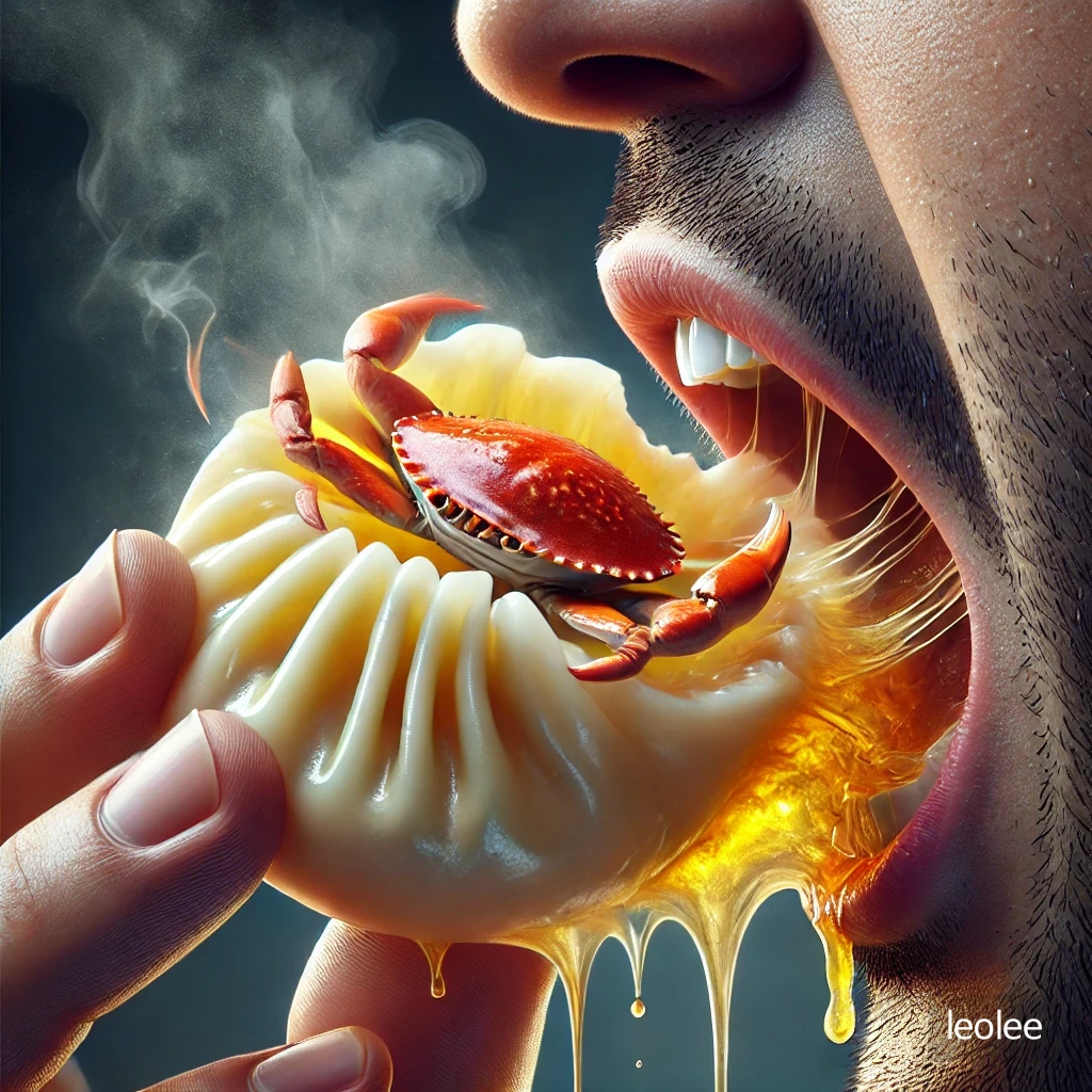 나는 그녀의 말을 따라 만두피의 윗부분을 깨물자 육즙이 쏟아지며 혀 끝에 퍼지는 진한 감칠맛이 마치 오래된 고급스러운 육수 같았다. 동시에 뜨겁지만 고소한 국물이 입안을 감싸며 퍼졌다. 그리고 게살 특유의 달콤함이 육즙과 어우러져 입안에서 녹아내렸다.