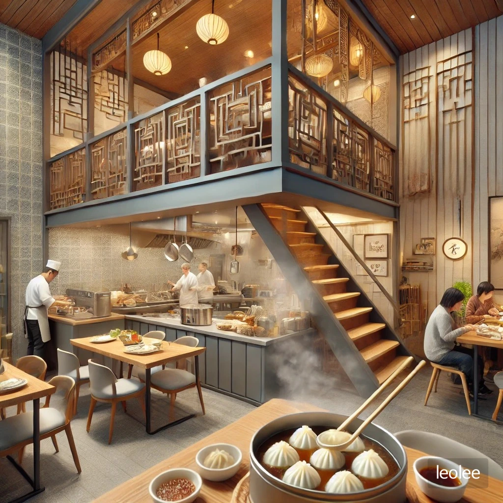 복층식으로 되어있었고 복층 아래에는 오픈 주방이 보였는데, 요리사들이 능숙한 손놀림으로 만두피를 빚고 있었다. 얇고 투명한 피 위에 정성스럽게 소를 채우고 꼬집어 마무리하는 모습은 예술작품을 만드는 듯했다. 김이 모락모락 나는 대나무 찜통이 주방 곳곳에 쌓여 있었고, 찜통에서 올라오는 증기가 주방을 감싸고 있었다.
