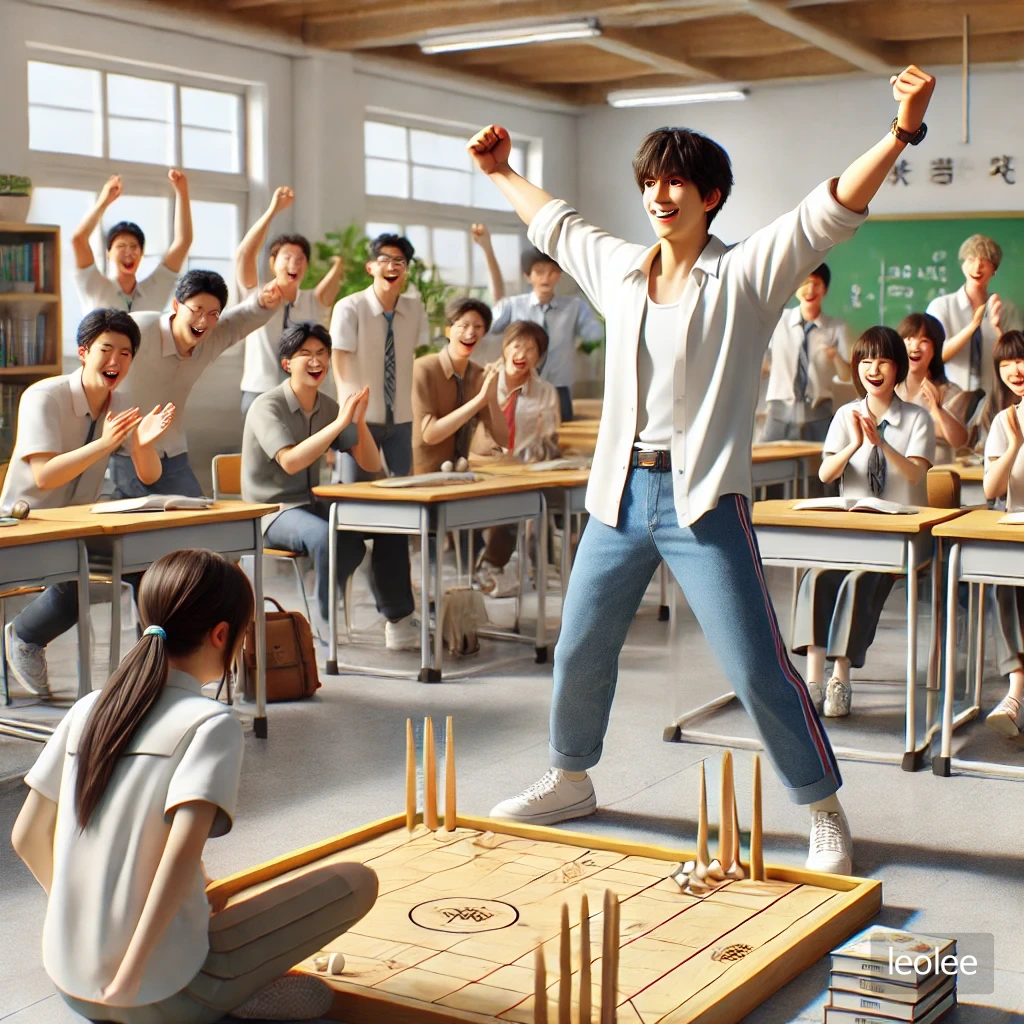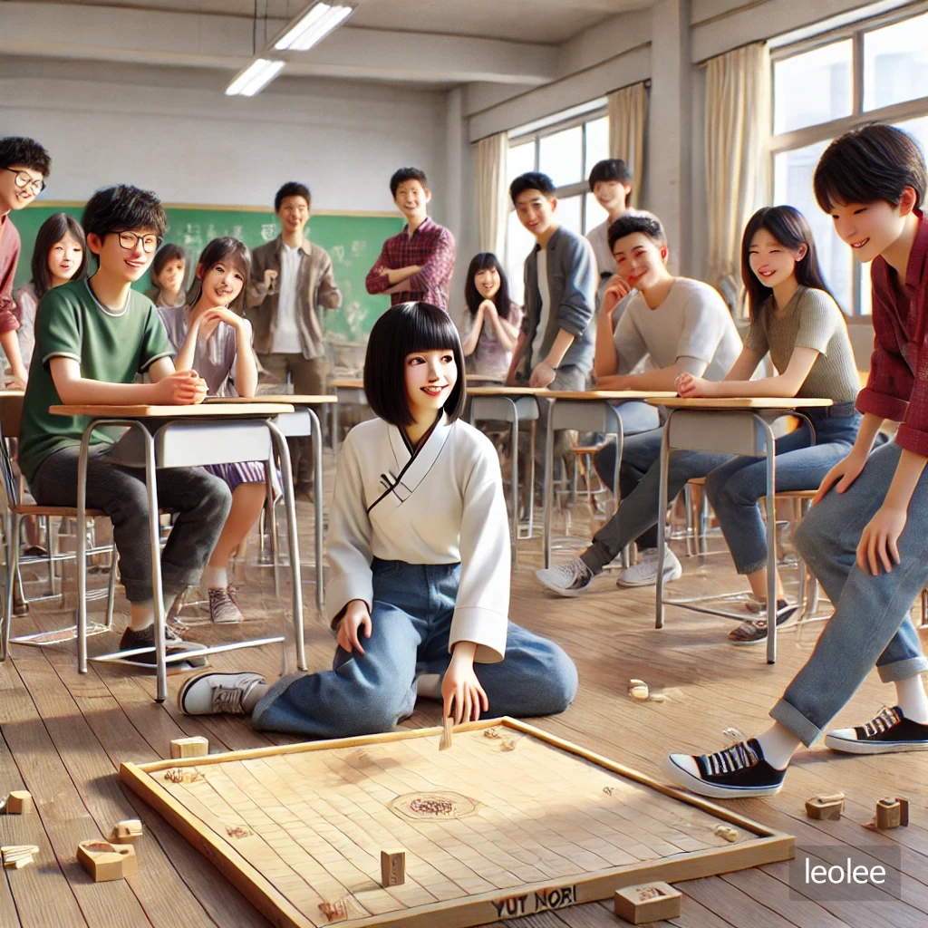한 여름의 더운 오후, 교실 안에는 에어컨 바람에 땀이 식어가며 학생들은 다소 나른한 모습으로 책상에 기대고 있었다. 하지만 내가 윷놀이 세트를 꺼내는 순간, 모두의 눈빛이 호기심으로 반짝이기 시작했다.