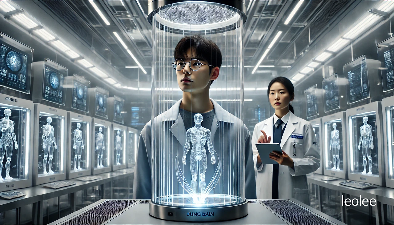 그가 들어선 45 연구실은 더 특별했다. 이곳은 AI가 인간의 신경망과 연결될 수 있는 기술을 연구하는 최전선이었다. 중앙에는 투명한 유리 캡슐이 있었고, 그 안에는 수백 개의 얇은 전선이 얽혀 있었다. 벽면에는 수십 개의 스크린이 동시에 작동하며 실시간으로 데이터를 분석하고 있었다.