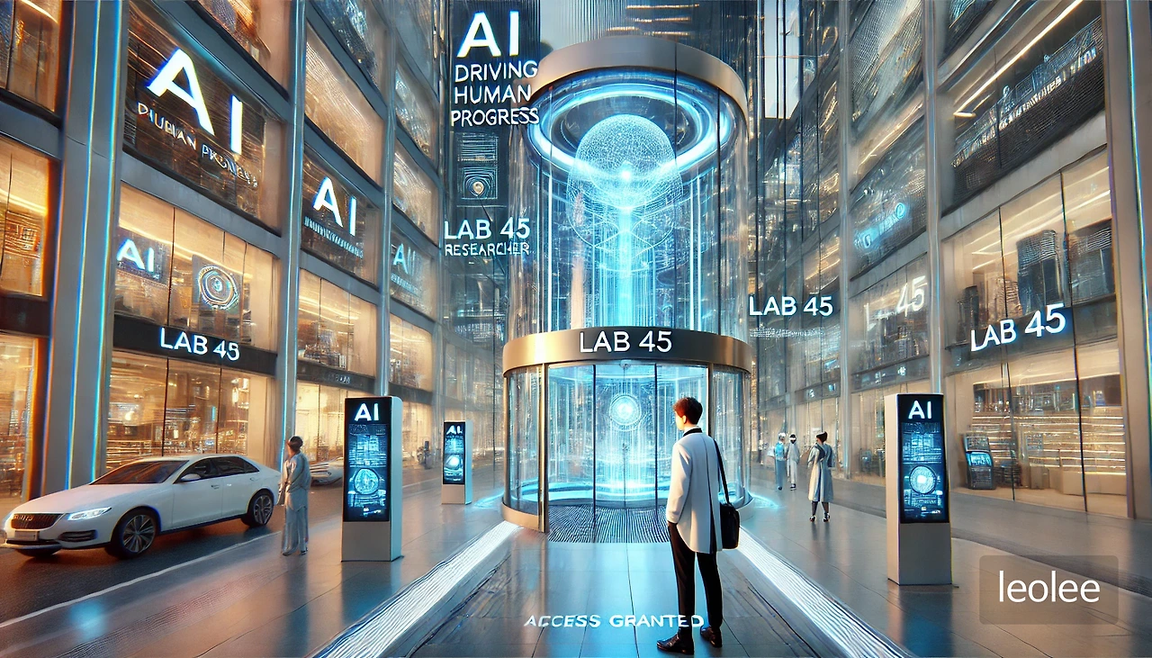 AI 연구소는 미래 도시의 심장부에 자리 잡고 있었다. 건물 외벽은 투명한 유리와 강철로 이루어져 있었고, 그 위를 데이터 스트림처럼 보이는 홀로그램 광고들이 물결쳤다. "AI, 인류의 진보를 이끕니다."라는 문구가 건물을 지나가는 사람들의 시선을 사로잡았다.