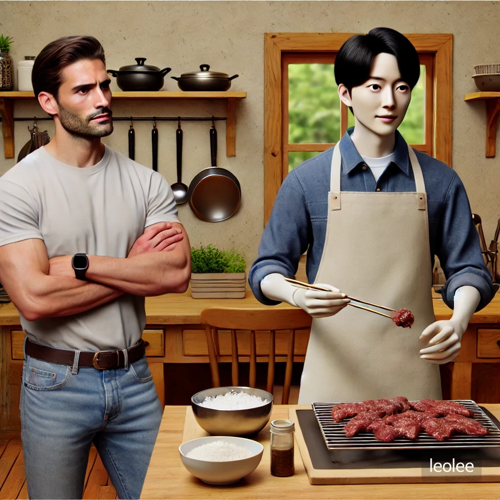 "그리고 네가 처음으로 한국 요리를 만들어보겠다고 했던 날도 잊을 수 없어. 불고기 양념을 이상하게 해서 고기가 거의 소금덩어리가 됐었잖아."