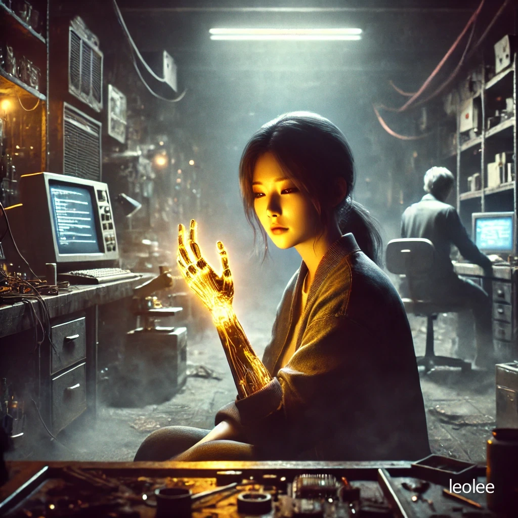 서윤은 어두운 작업실에 홀로 앉아 있었다. 낡은 장비들과 불규칙하게 깜빡이는 불빛 속에서, 그녀는 손끝에 느껴지는 디지털 세계와의 연결에 점점 더 압도당하고 있었다. 그날도 마찬가지로, 디지털 흐름은 빠르고 강렬하게 느껴졌고, 그 감각이 서윤의 손끝을 통해 전신으로 퍼져나갔다. 눈을 감고, 깊은숨을 내쉬며 그녀는 이 능력에 대해 다시 한번 혼란을 느꼈다.