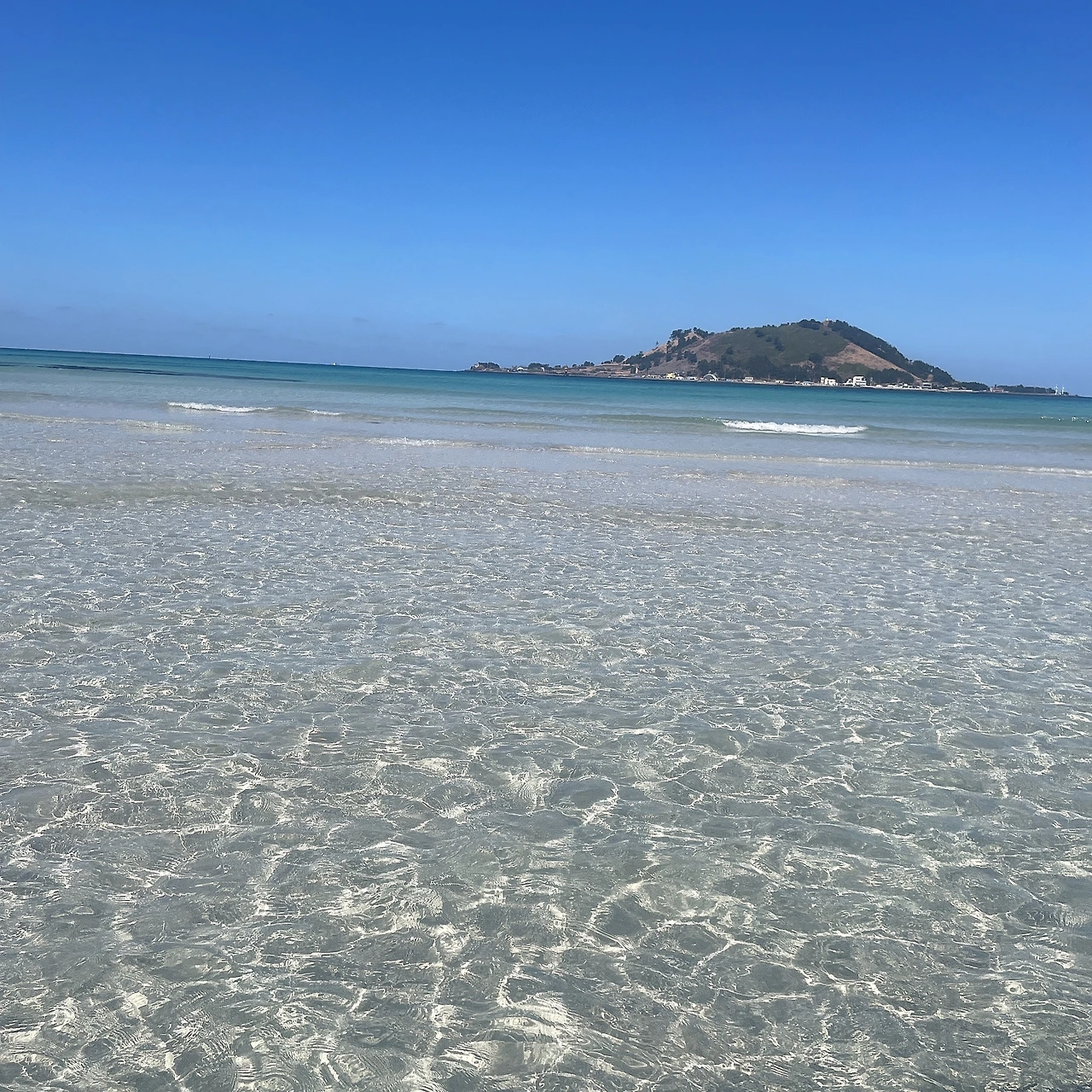 바다를 처음 보는 아이에게 바다가 얼마나 시원한지 알려주고 싶어 아이를 안고 조금씩 바다로 들어갔다.