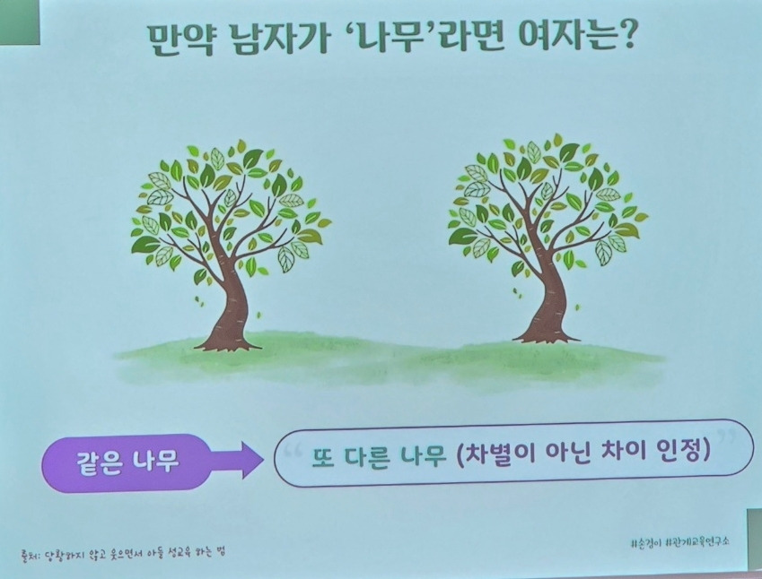 하지만 남자와 여자는 생김새가 다른 나무라는 그 '차이'를 예를 들어 말해주면 '젠더는다양함이다'라는 설명을 좀 더 쉽게 이해할 수 있을 것이다.