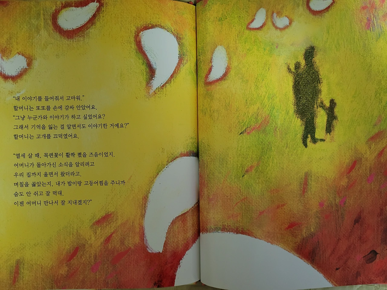 그러던 중 큰 아이가 1학년 때 학교도서관에서 빌려온 책 한 권 '까치가 물고 간 할머니의 기억'은 그때 그 시절로 나를 데려다 놓았다.