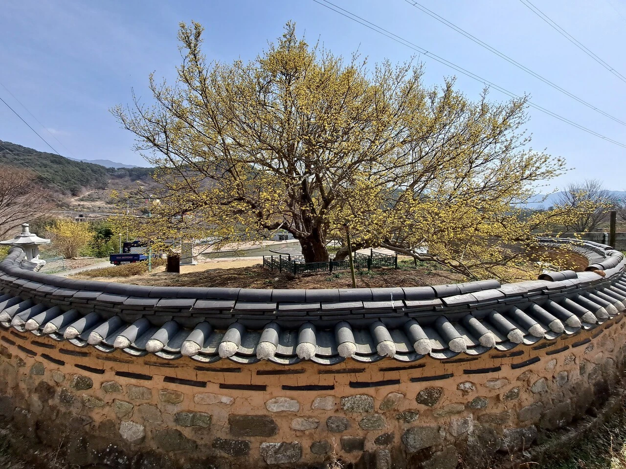 구례 산동면 계척 마을 산수유 시목은 1,000여 년 전 중국 산둥성에서 가져와 우리나라에서 가장 먼저 심은 산수유나무 시조로 알려져 있다.