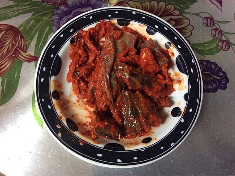 곰삭은 도루묵 식해는 대가리와 내장을 제거하고 미끈미끈한 진액을 깨끗이 씻어낸 후 꾸덕하게 말려 소금 간한 도루묵에 채 썬 무, 조밥, 고춧가루, 갖은 양념을 넣고 버무려 삭혔다. 만든이의 정성과 수고스러움에 시간의 마법이 더해젔다.