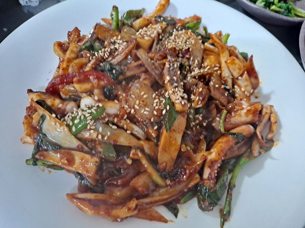 사람은 돼지고기도, 채소가 들어간 오징어도, 시래기도 먹을 수 있다.