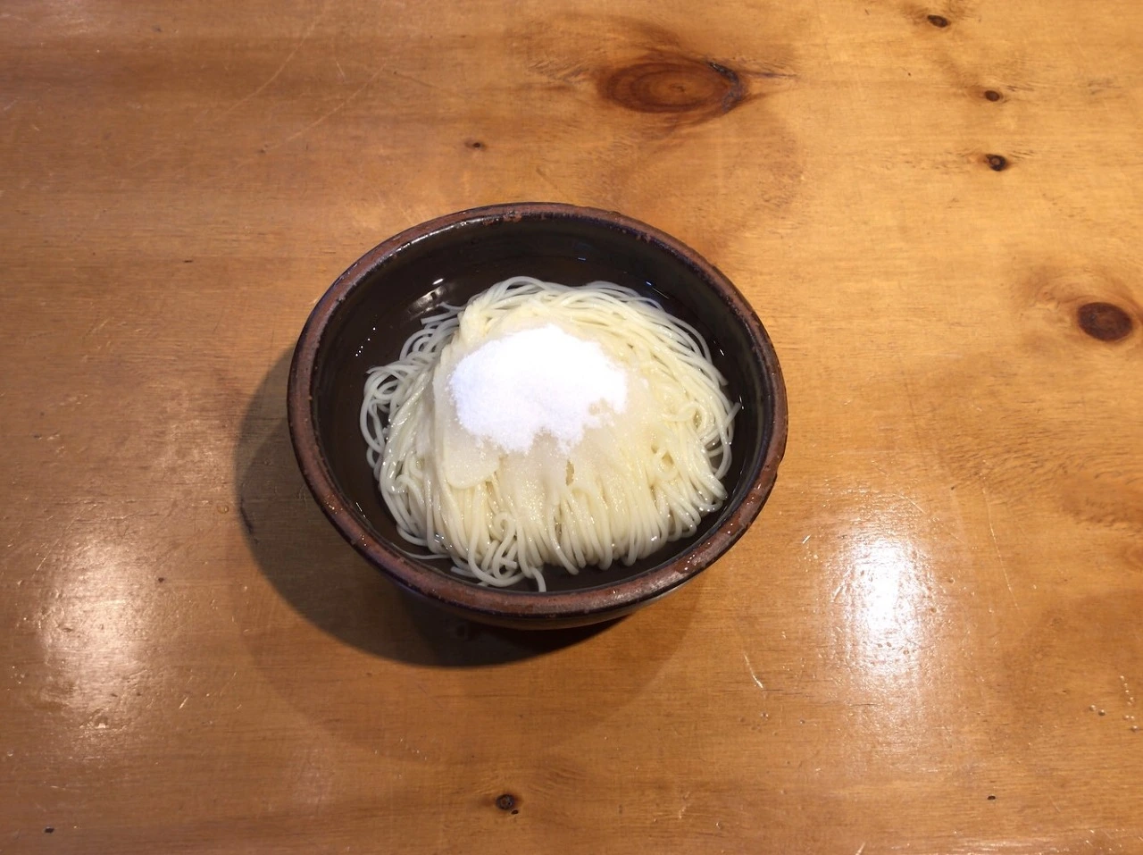 설탕을 면과 생수 물에 섞는다. 무미(無味)의 물이 깔끔한 단맛으로 변한다. 달금하다. 시간이 지날수록 단맛이 강해진다. 약간 굵은 면에도 시간이 흐를수록 단맛이 서서히 스며든다. 부드러움과 졸깃함이 섞인 면에도 달금함이 묻어난다.