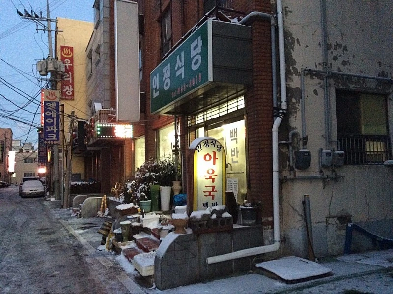 아침 5시 숙소에서 나와 아침 식사를 하기 위해 인정식당을 찾는다. 겨울눈이 내린 길에 살얼음이 끼었다. 몇 차례 와 익숙한 길이지만 조심조심 걷는다.