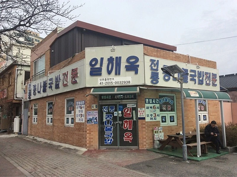 익산 일해옥은 국민연금공단익산군산지사 대각선에 있는 콩나물국밥 전문점이다. 일해옥 상호명은 ‘해장국 하나만큼은 일등으로 끓이는 집’이 되고 싶은 마음으로 정했다고 한다.
